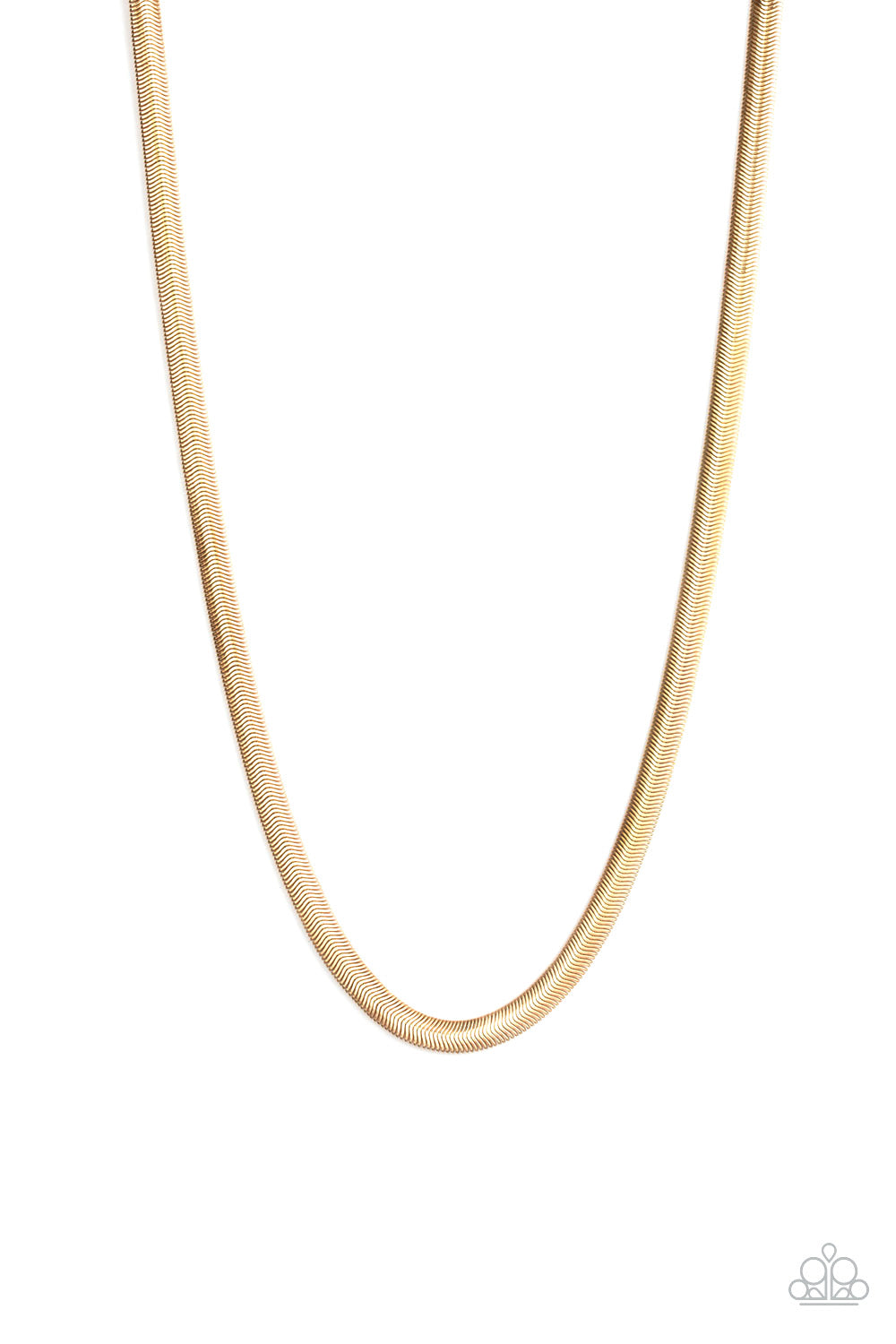 Featuring a high-sheen finish, a thick gold herringbone chain drapes across the chest for a sleek, upscale look. Features an adjustable clasp closure.